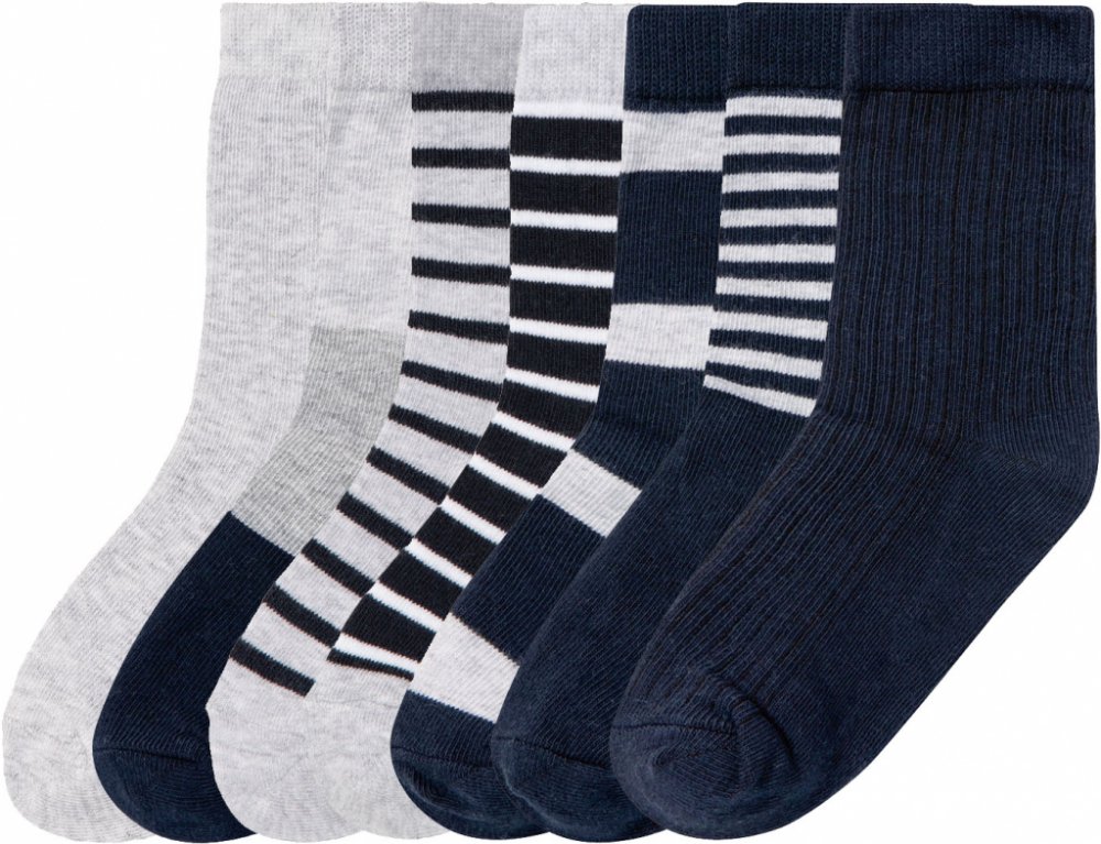 lupilu Chlapecké ponožky s BIO bavlnou, 7 párů Příjemné na nošení díky vysokému podílu BIO bavlny Skvěle sedí a drží tvar díky značce LYCRA® 7 párů BIO bavlna Prodyšnější Jemnější a měkčí Stálý tvar a delší životnost Šetrnější k pokožce z hlediska alergií a ekzémů Šetrná k životnímu prostředí Materiál Šedá / modrá / navy modrá varianta: 78 % bavlna, 20 % polyamid, 2 % elastan (LYCRA®) Šedá / navy modrá / žlutá varianta: 74 % bavlna, 19 % polyamid, 5 % polyester, 2 % elastan (LYCRA®) Šedá / šedá pruhovaná / modrá bílé pruhy varianta: 78 % bavlna, 20 % polyamid, 2 % elastan (LYCRA®) Navy modrá varianta: 76 % bavlna, 22 % polyamid, 2 % elastan (LYCRA®) Velikost 19/22 - 27/30