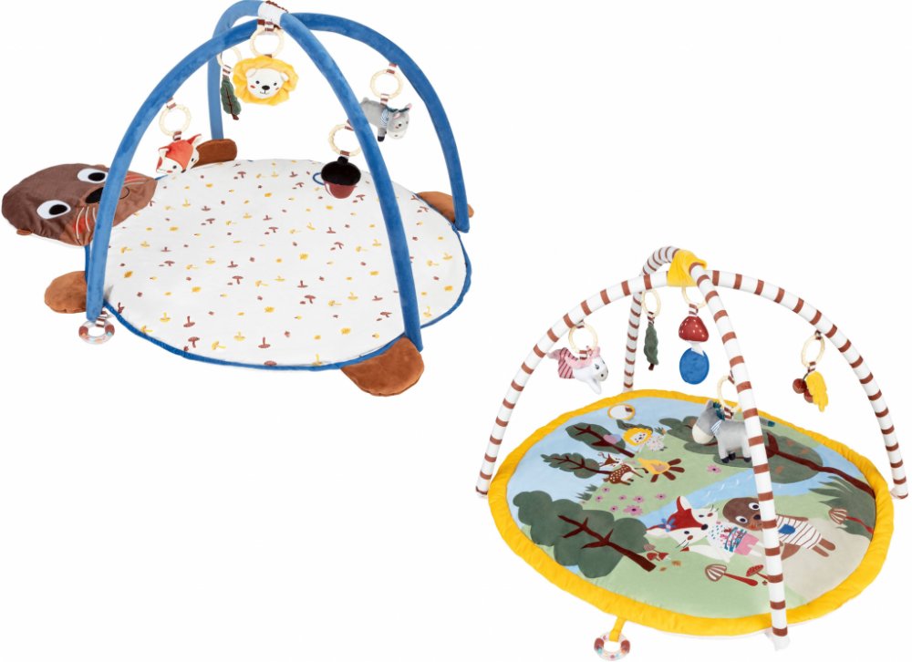 lupilu® Dětská deka s hrazdičkou Rozmanité funkce k objevení: chrastítko, praskající fólie a zrcadlo Zlepšuje hmat, sluch a podporuje koordinaci rukou a očí Pestré plyšové přívěsky se zvukovými efekty nabádají k chytání Sklápěcí dno - pro jednoduchý transport na cestách Doporučený věk: od 0 let Materiál Oválná podložka: PP, polyester, plyš, TC, žerzej Podložka s motivem: PP, polyester, plyš, TC Rozměry Oválná podložka: cca 85 x 80 cm Podložka s motivem: cca 81 x 106 cm Hmotnost Oválná podložka: cca 1 kg Podložka s motivem: cca 950 g