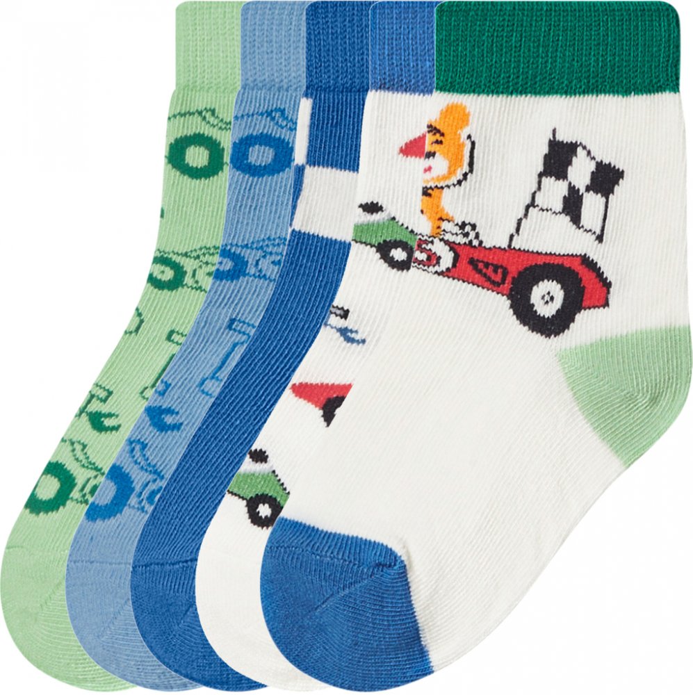 lupilu ® Dětské ponožky s BIO bavlnou, 5 párů Vlastnosti Obsahují BIO bavlnu Tvarová stálost díky materiálu Creora™ Elastanu 5 párů Vlastnosti výrobku tabletd Barva: bílá / šedá / navy modrá / černá; modrá/zelená/bílá; mátová/růžová/bílá Vzor: modrá/zelená/bílá: auta; kostka mátová/růžová/bílá: motýly; pruhy Detail: BIO bavlna Více kusů v balení: 5 párů Materiál: bílá / šedá / navy modrá / černá: ...