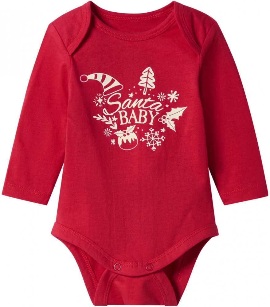 lupilu ® Dětské vánoční body Vlastnosti Příjemné na nošení díky čisté bavlně Navlékací límec a zapínání v rozkroku na patentní knoflíky pro snadné oblékání a svlékání Podporujeme udržitelné pěstování bavlny v Africe Vlastnosti výrobku ;} Barva: červená; zelená; bílá Vzor: bílá: celoplošný potisk - sob Detail: čistá bavlna, zapínání v rozkroku Tvar límce: navlékací límec Zapínání na rameni: bez spe...