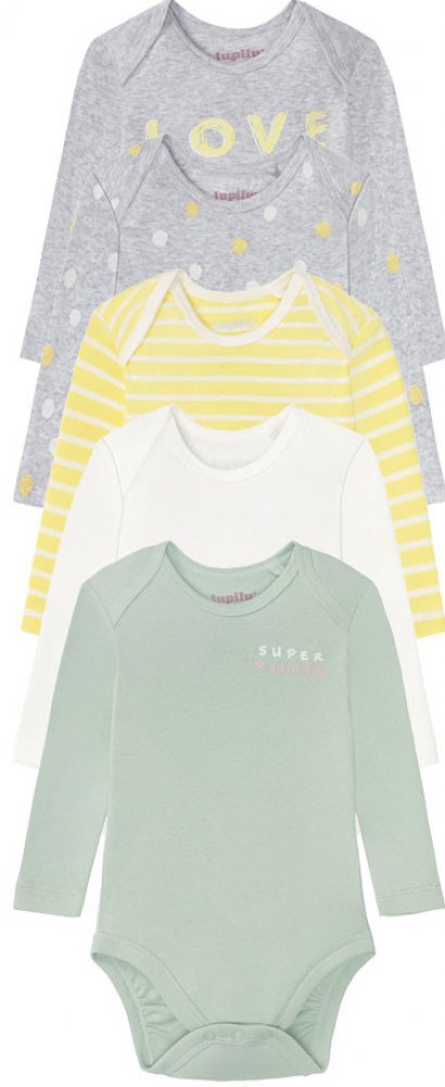LUPILU Dívčí body s dlouhými rukávy BIO 5kusů šedá žlutá mintová bílá