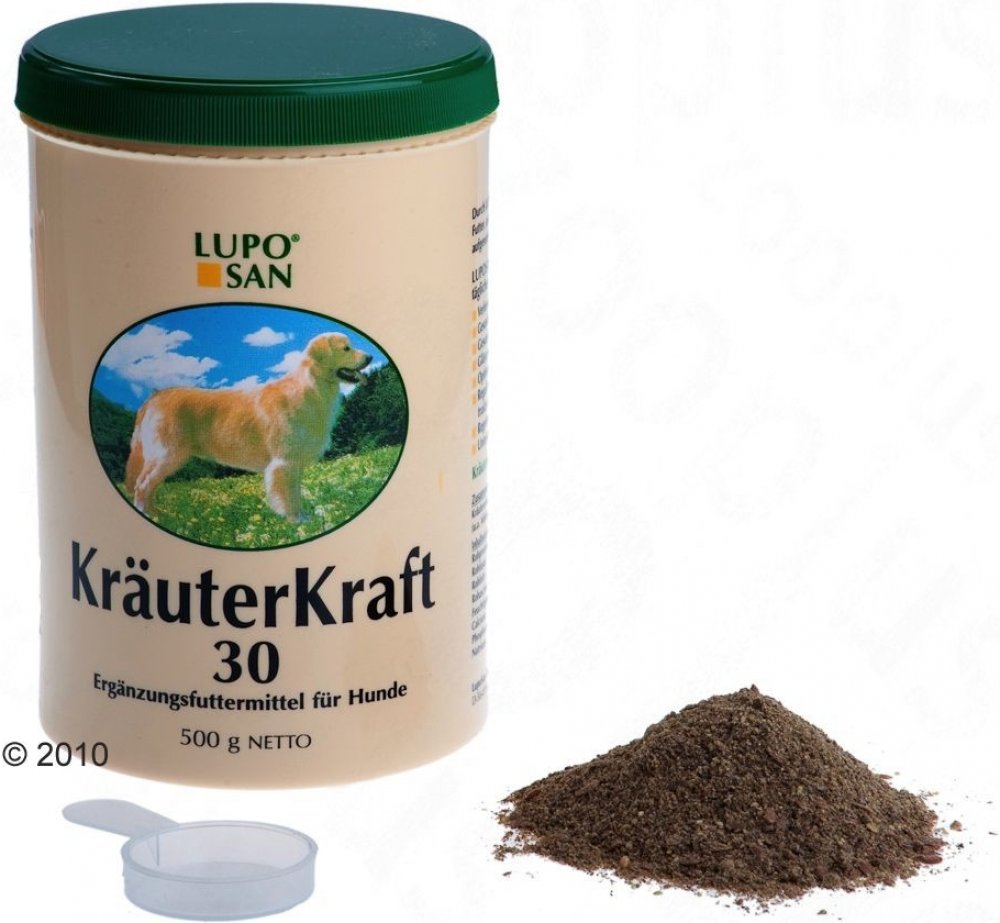Přídavek preparátu Luposan 30 síla bylin ke krmivu zajišťuje základ pro optimálně fungující metabolismus. Luposan obsahuje jedinečné, přírodní spojení účinných látek na bázi bylin, obsahuje mikro řasy a spoustu dalších přírodních složek, jako: minerální látky, aminokyseliny, stopové prvky, vitamíny a nenasycené mastné kyseliny. Díky Luposan 30 síle bylin bude každé krmivo, i kvalitní, lépe přijímáno a zužitkováno. Při každodenním přidávání Luposanu ke krmivu je zajištěno: zlepšení vstřebávání živin lesklá srst zdravá kůže optimálně fungující metabolismus regulace a čištění trávicího traktu a odvádění škodlivin z těla pravidelné a přirozené čištění cirkumanálních žláz podpora vlastní obranyschopnosti