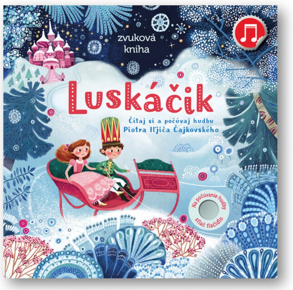Luskáčik ožíva v tejto čarovnej zvukovej knižke. Stlačte tlačidlo, vypočujte si s deťmi melódie z Luskáčika, slávneho baletu Petra Iľjiča Čajkovského, a prezerajte si nádherné ilustrácie.Vstúpte do ríše rozprávok a snov. Poďte sa s deťmi ponoriť do čarovného vianočného príbehu malej Kláry a statočného dreveného panáčika, Luskáčika. Užite si ich rozprávkové dobrodružstvo s Myším kráľom a Cukrovou vílou v Kráľovstve sladkostí. Tento pôvabný klasický príbeh je doplnený nádhernou hudbou Petra Iľjiča Čajkovského, ktorá zaznie po stlačení tlačidla. Nechajte sa unášať na vlnách krásnej melódie a vstúpte do ríše rozprávok a snov.