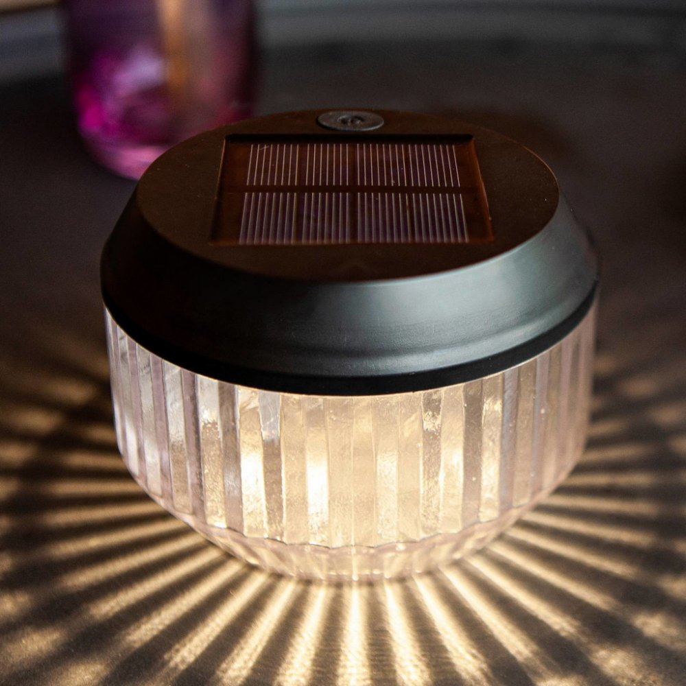 Dekorativní LED solární stolní lampa Diva je vyrobena z plastu, je chráněna proti stříkající vodě a je zde nabízena ve dvojitém balení. Drážkovaný difuzor vytváří zajímavý světelný efekt. Lze ji používat bez samostatného zdroje energie díky solárnímu panelu a dobíjecí baterii. Integrovaný vypínač (zapnutí/vypnutí)- praktická sada 2- lze používat bez zdroje energie díky solárnímu panelu a dobíjecí baterii- doba svícení: cca 10 hodin- doba nabíjení: cca 9 hodin- chráněno proti stříkající vodě (IP44)