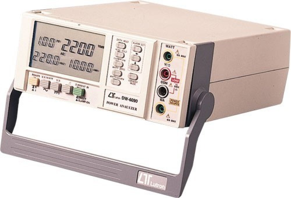 LUTRON DW-6090A je stolní wattmetr. Rozsah měření 0~6000W; měření W, VA, kWh, PF (Power factor), 600V AC/DC, 10A AC/DC, Hz, základní přesnost ± (1,5% + 1dig.), RS-232