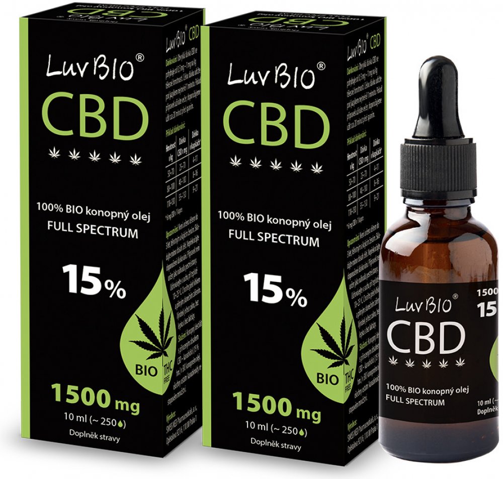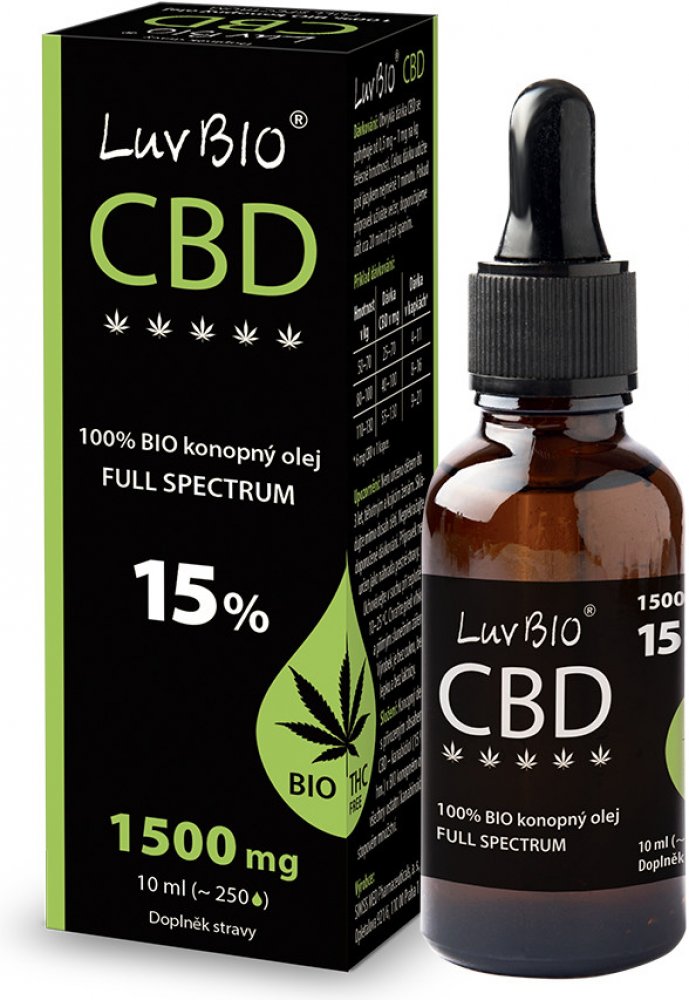 LuvBIO CBD 15 % BIO konopný olej 10 ml