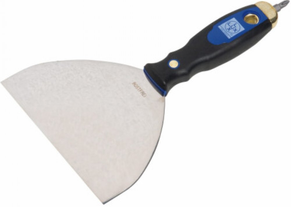 Špachtle na sádrokarton LUX-TOOLS s délkou 150 mm a měkkou rukojetí je speciálně navržena pro vyplňování spár v sádrokartonu. Přídavný pevný bit na konci rukojeti umožňuje přímé utahování vyčnívajících hlav šroubů. Špachtle na sádrokarton má 150 mm širokou čepel z nerezové oceli a dvoukomponentní měkkou rukojeť s pevným bitem (PH2).