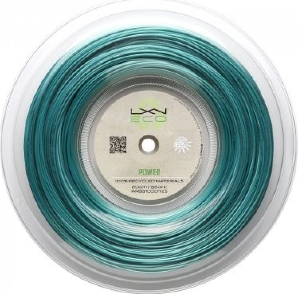 Tenisový výplet Luxilon Eco Power 1,25mm pro středně pokročilé klubové hráče je první výplet vyrobený ze 100% recyklovaného polyesteru zaměřený na sílu, kontrolu a spin.