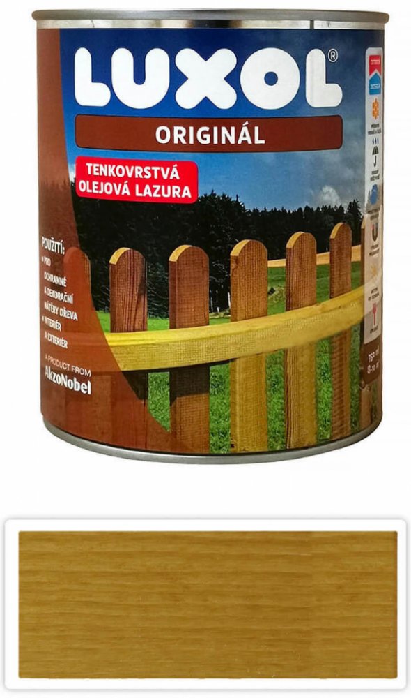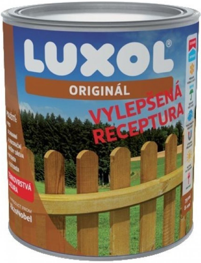 Luxol Originál je tenkovrstvá lazura pro dekorativní nátěry na dřevo s ochranou proti povětrnostním vlivům a UV záření.