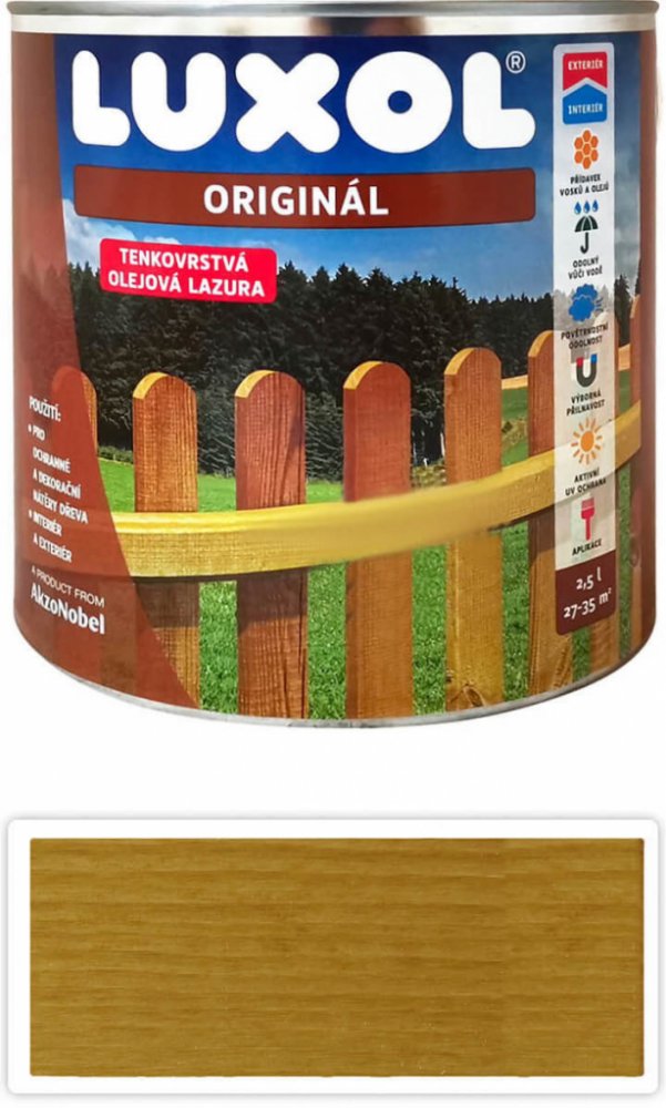 Luxol Originál je tenkovrstvá lazura pro dekorativní nátěry na dřevo s ochranou proti povětrnostním vlivům a UV záření.