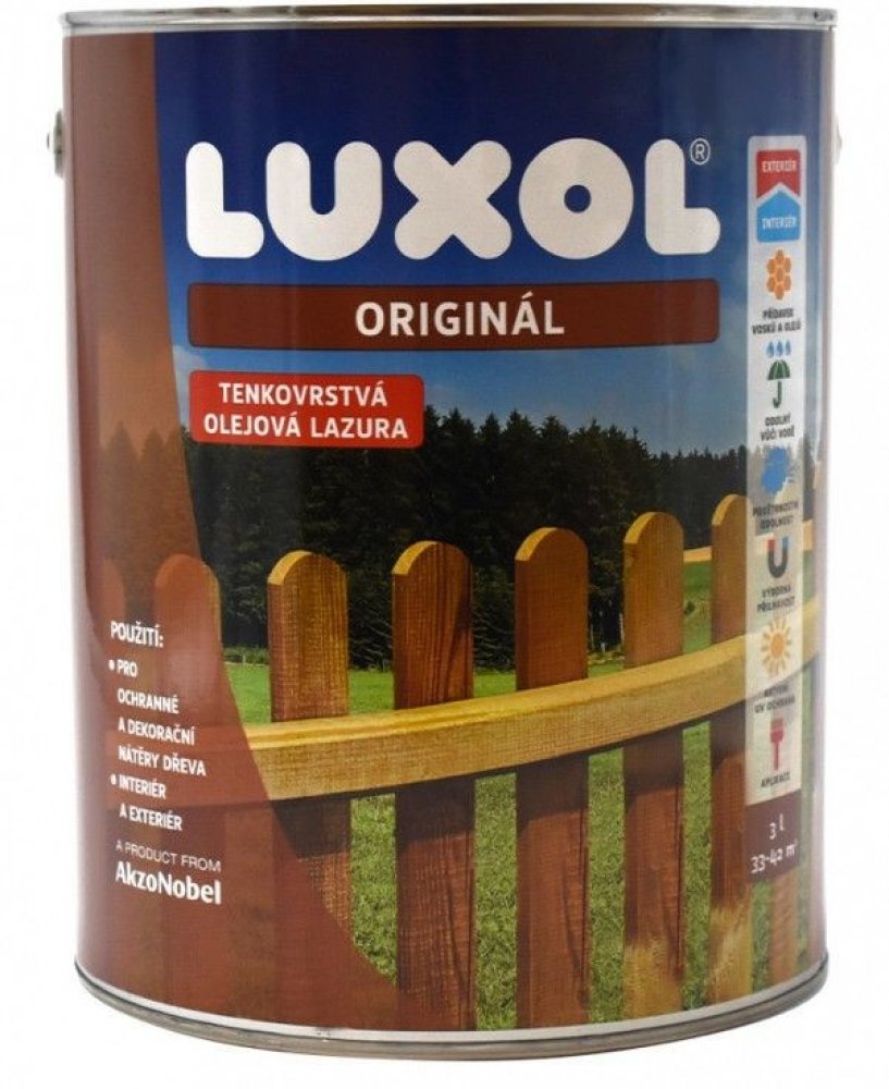 Luxol Originál je tenkovrstvá lazura pro dekorativní nátěry na dřevo s ochranou proti povětrnostním vlivům a UV záření. Nová receptura má vylepšené vlastnosti jako zvýšenou vodoodpudivost, vysokou přilnavost dalšího nátěru, mechanickou odolnost a také hlubokou penetraci.