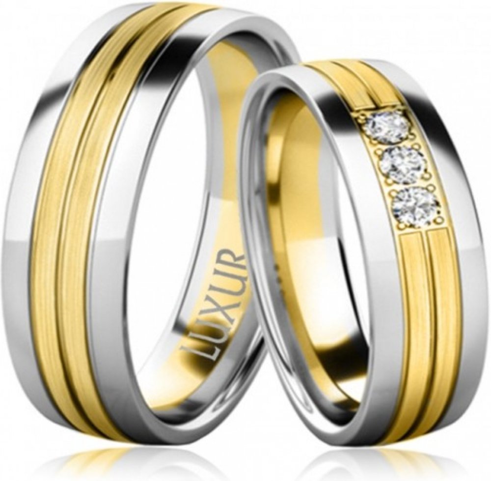 Širší obroučka snubních prstenů Darja na ruce krásně vynikne, efektní proužky celý model zjemňují. Vyberte si z bílého, žlutého nebo růžového zlata či některou ze zajímavých kombinací. Počet a kvalitu kamenů si zvolí nevěsta sama. Jak se Vám líbí?
