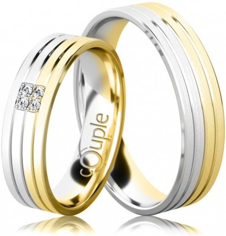Originálně řešený design snubních prstenů Dylan nikdo jen tak nepřehlédne. Decentní proužky krášlí obroučku obou partnerů. Vyberte si sami barvu zlata, která je Vašemu srdci nejblíž – bílé, žluté, růžové nebo některou jejich kombinaci.