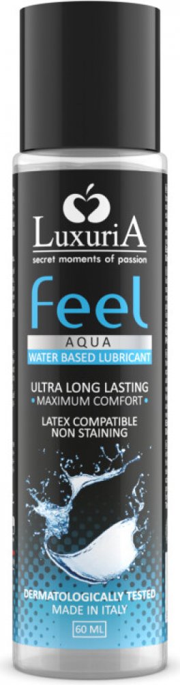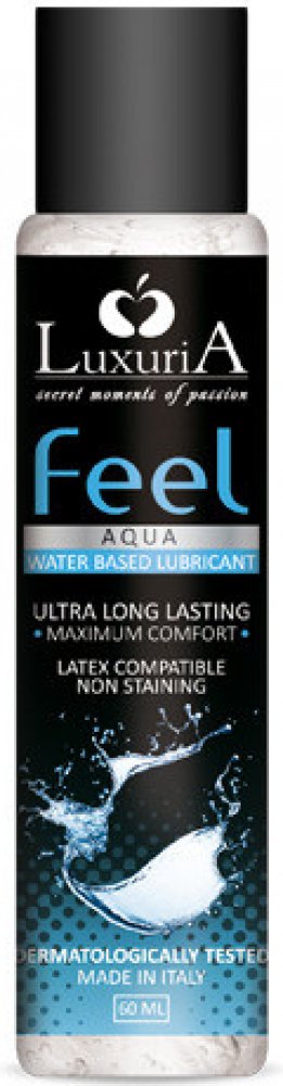 Luxuria Feel Aqua intimní lubrikační gel na vodní bázi speciálně pro vaginální hydrataci a lubrikaci před pohlavním stykem. Nemastný, neobsahuje tukové látky. Díky svému exkluzivnímu vzorci bohatém na vzácných přírodních aktivních prvků Luxuria Feel Aqua brání nepohodlí, pálení a podráždění typických intimních partií. Vhodné použití s kondomy.