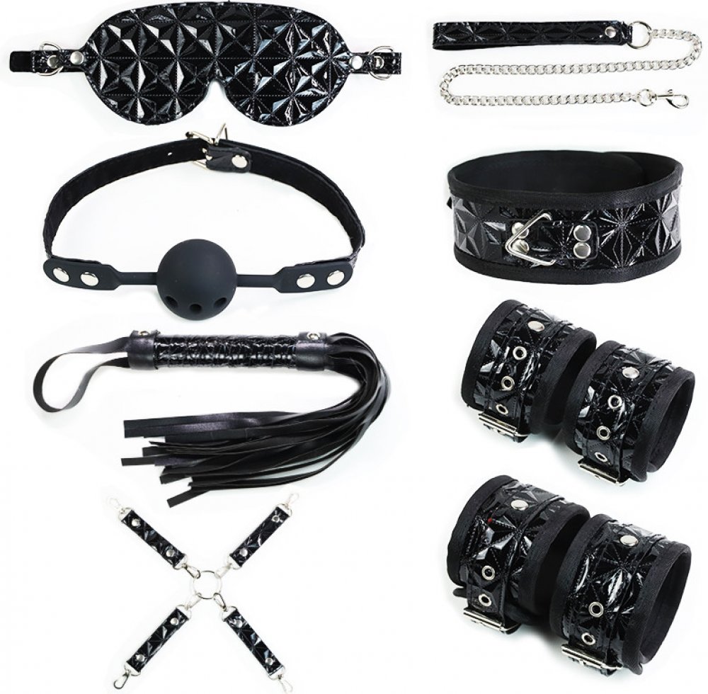 Tato elegantní a smyslná sada je ideální pro milovníky BDSM, kteří ocení kombinaci dominance a luxusního designu. Lesklý černý nebo červený povrch s reliéfním vzorem dodává exkluzivní vzhled, zatímco kvalitní materiály zajišťují pohodlí a pevnost při hrátkách.