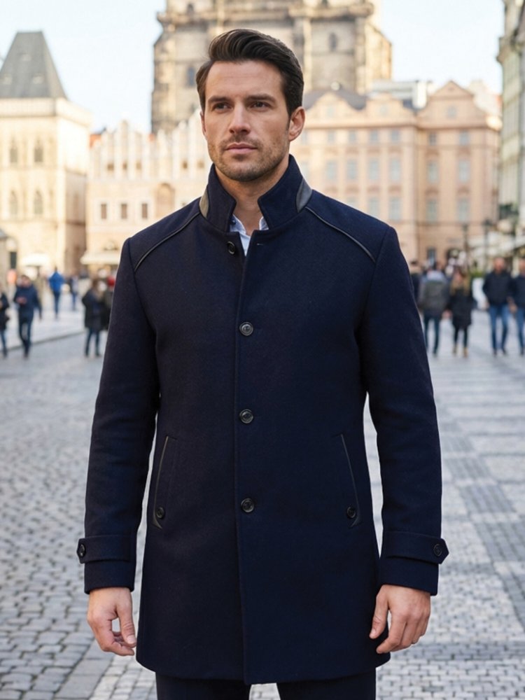 Luxusní pánský kabát tmavě modrý