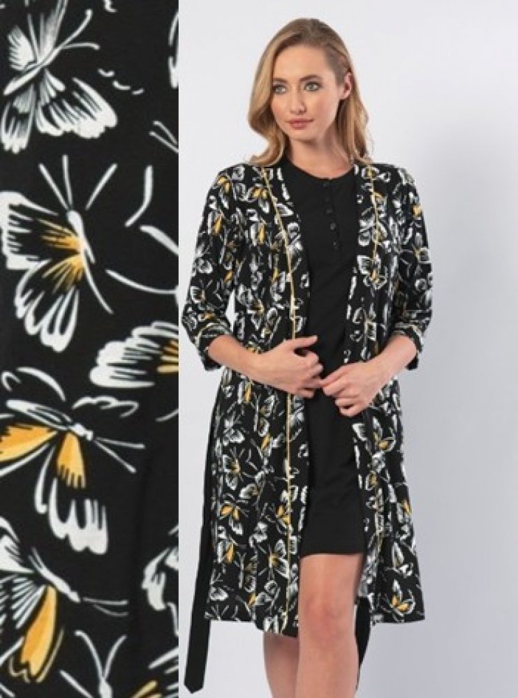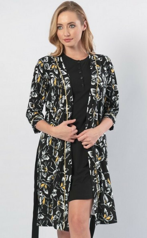 Luxusní souprava Motýli župan a noční košile Černá