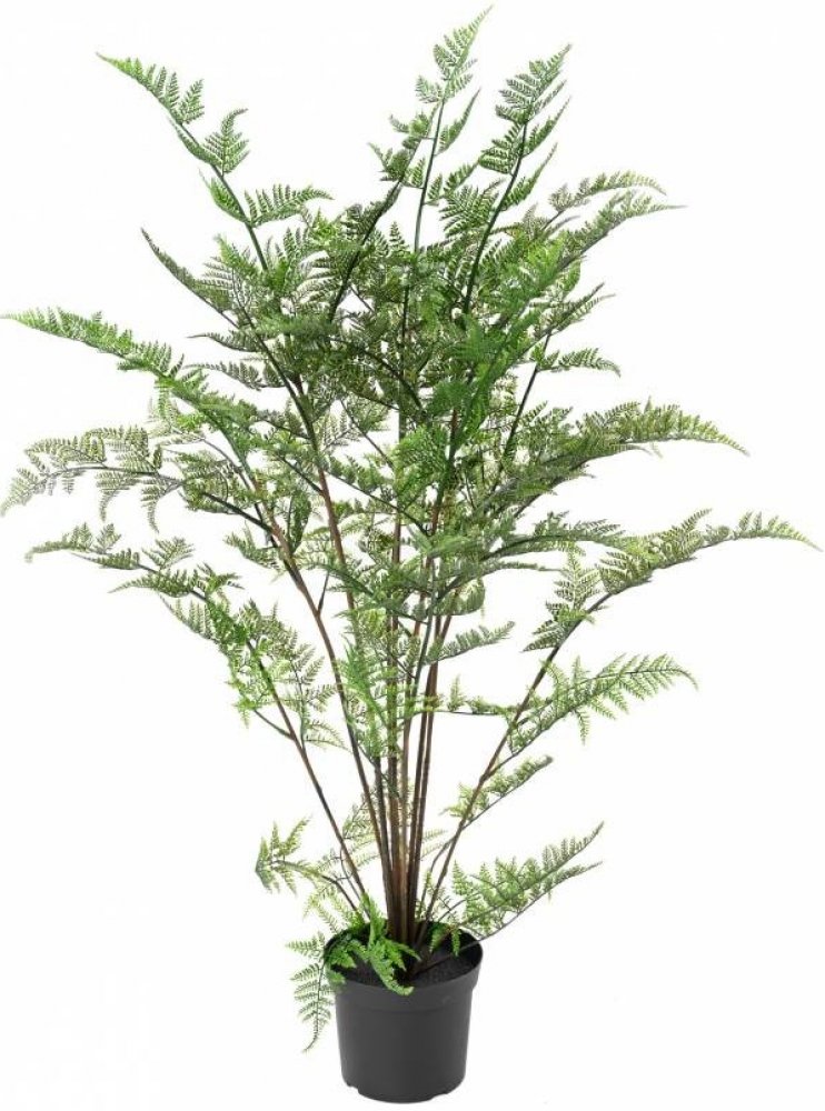 Luxusní umělá kapradina vhodná pro vnitřní i venkovní výzdobu. Kapradina má celkovou výšku včetně kotvícího květináče 110cm. Umělé kapradí zdobí 10 větví a 9 mladých výhonků. Zelené listy jsou vyrobeny z PE s UV ochranou. Umělá kapradina měří na šířku cca 80cm. Hmotnost 4,3kg. Umělou kapradinu dodáváme v kotvícím květináči z PVC (průměr 18cm, výška 16cm.) Umělá rostlina je určena k vložení do většího dekoračního květináče. Umělá kapradina 104, 110cm je od předního evropského výrobce, který se zaměřuje jen na produkty špičkové kvality. Pro výrobu jsou použity materiály a komponenty v TOP kvalitě. Vše je doladěno do posledního detailu jako u živých rostlin. Díky tomu jde o dokonalou repliku, která je jen těžko rozeznatelná od živé rostliny.Umělé stromy jsou skvělou alternativou živých stromů všude tam kde nemohou růst, nebo kde je péče o ně nemožná. Umělé stromy mají navíc řadu výhod. Nikdy nezvadnou a budou vypadat stále skvěle a čerstvě, neopadávají z nich listy o odpadá pak pravidelný úklid. Umělé stromy nemusíte zalévat, doplňovat, zeminu ani hnojiva. Kromě času tak ušetříte i peníze. Umělé stromy neprodukují žádný odpad a nároky na údržbu jsou prakticky nulové. Stačí je jen občas otřít vlhkým hadříkem. Navíc mohou tyto stromy být i v těžko dostupných prostorách, tmavých místech bez sluníčka, nebo zakouřených interiérech. Finální podobu lze snadno do jisté míry upravit a nehrozí ani nežádoucí růst. Umělé stromy nemohou sloužit jako líhniště hmyzu ani nezpůsobují alergickou rekci. Umělé rostliny v interiérech pozitivně působí na člověka a navozuje pocity pohody, navíc podporují kreativitu. Nové materiály zaručují že stromy vypadají opravdu skvěle jako živé. U většiny umělých stromů je navíc použit přírodní kmen který podtrhává autentičnost rostliny.