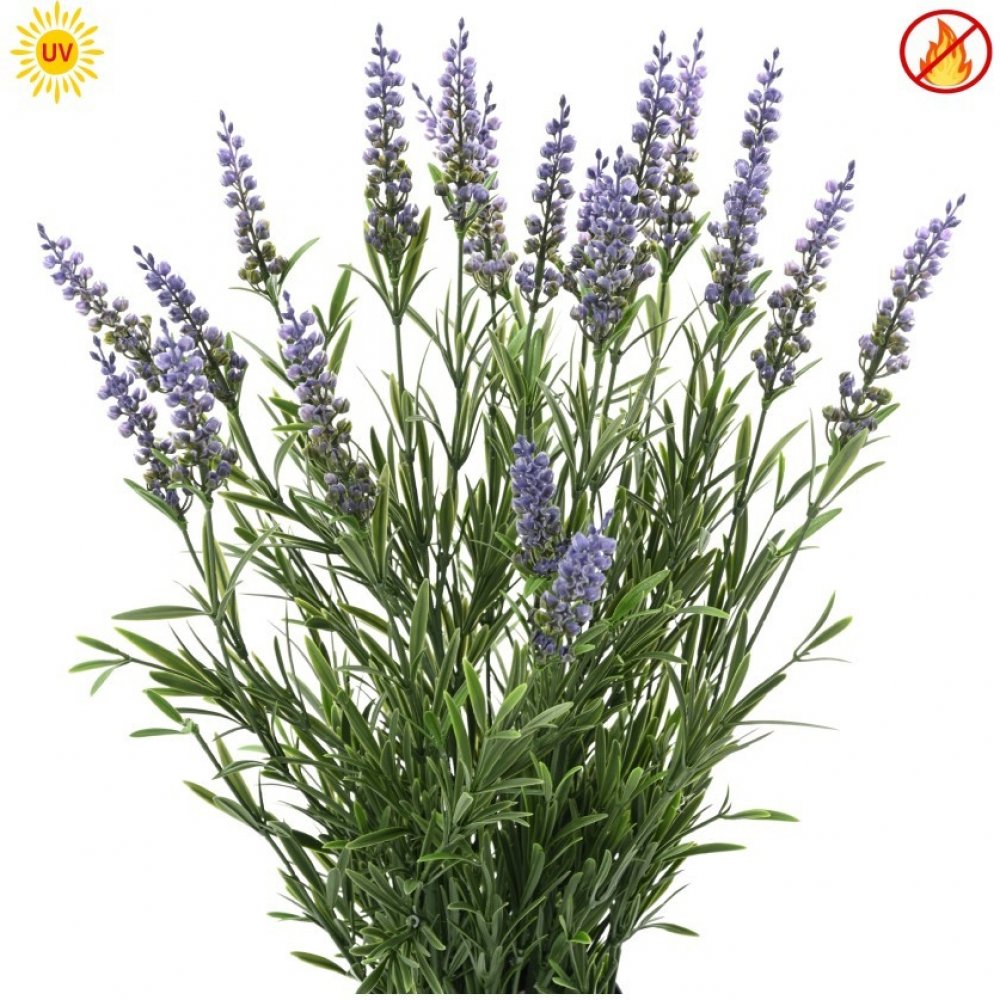 Umělá levandule má ohnivzdornou úpravu dle klasifikace B/S3/d0 v souladu s normou EN 13501-1:2018, jak je potvrzeno v dokumentu č. SDFS2406004560FF vydaném inspekční společností SGS dne 9. července 2024.Umělá květina LEVANDULE UV, 55cm je od předního evropského výrobce, který se zaměřuje jen na produkty špičkové kvality. Pro výrobu jsou použity materiály a komponenty v TOP kvalitě. Vše je doladěno do posledního detailu jako u živých rostlin. Díky tomu jde o dokonalou repliku, která je jen těžko rozeznatelná od živé rostliny.Umělé květiny mají oproti živým rostlinám řadu výhod. Umělou květinu nemusíte zalévat, ani hnojit, odpadá vám tak pravidelná údržba a navíc kromě času ušetříte také peníze. Moderní technologie výroby a nové materiály umožňují autentičnost umělých květin, díky které vypadají jako živé. Umělé květiny, stejně jako živé mají pozitivní vliv na člověka, ovlivňují jeho kreativitu a navozují pocit pohody. Umělé kytky vám navíc vydrží dlouhá léta, budou vypadat stále skvěle a čerstvě, stačí je jen občas otřít vlhkým hadříkem. Nenapadnou je škůdci, ani nemohou způsobit alergické reakce. Neprodukují CO2 takže je možné umístit i do ložnice, kdy by živé květiny neměly být. Díky nulovým nákladům na údržbu a kvalitě zpracování dnešních umělých květin jsou skvělou alternativou všude tam kde živé rostliny nemohou být, např. na tmavých místech, zakouřených prostorách, nebo jen proto že nevyžadují žádnou údržbu, nerostou, neopadávají a nevadnou.