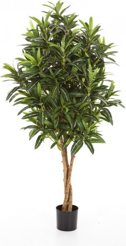 Luxusní umělý strom CROTON GOLDFINGER STROM má celkovou výšku rostliny včetně kotvícího květináče 105cm. Počet listů 1092ks. Hmotnost 3,18kg. Další rozměry včetně šířky koruny výrobce neuvádí. Umělý strom CROTON GOLDFINGER STROM je od předního evropského výrobce, který se zaměřuje jen na produkty špičkové kvality. Pro výrobu jsou použity materiály a komponenty v TOP kvalitě. Vše je doladěno do posledního detailu jako u živých rostlin. Díky tomu jde o dokonalou repliku, která je jen těžko rozeznatelná od živé rostliny.Umělé stromy jsou skvělou alternativou živých stromů všude tam kde nemohou růst, nebo kde je péče o ně nemožná. Umělé stromy mají navíc řadu výhod. Nikdy nezvadnou a budou vypadat stále skvěle a čerstvě, neopadávají z nich listy o odpadá pak pravidelný úklid. Umělé stromy nemusíte zalévat, doplňovat, zeminu ani hnojiva. Kromě času tak ušetříte i peníze. Umělé stromy neprodukují žádný odpad a nároky na údržbu jsou prakticky nulové. Stačí je jen občas otřít vlhkým hadříkem. Navíc mohou tyto stromy být i v těžko dostupných prostorách, tmavých místech bez sluníčka, nebo zakouřených interiérech. Finální podobu lze snadno do jisté míry upravit a nehrozí ani nežádoucí růst. Umělé stromy nemohou sloužit jako líhniště hmyzu ani nezpůsobují alergickou rekci. Umělé rostliny v interiérech pozitivně působí na člověka a navozuje pocity pohody, navíc podporují kreativitu. Nové materiály zaručují že stromy vypadají opravdu skvěle jako živé. U většiny umělých stromů je navíc použit přírodní kmen který podtrhává autentičnost rostliny.