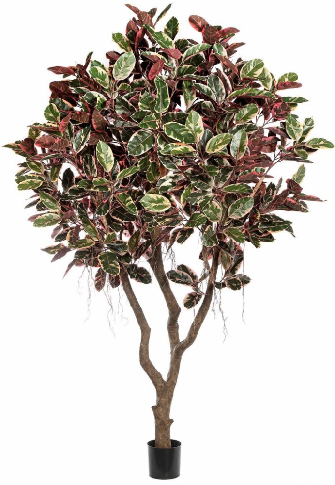 Luxusní umělý strom FICUS ELASTICA RED RUBY má celkovou výšku včetně kotvícího květináče 295cm. Počet listů zbarvených do zelena a červena 715ks. Hmotnost a další rozměry včetně šířky koruny výrobce neuvádí. Umělý strom FICUS ELASTICA RED RUBY, 295cm je od předního evropského výrobce, který se zaměřuje jen na produkty špičkové kvality. Pro výrobu jsou použity materiály a komponenty v TOP kvalitě. Vše je doladěno do posledního detailu jako u živých rostlin. Díky tomu jde o dokonalou repliku, která je jen těžko rozeznatelná od živé rostliny.Umělé stromy jsou skvělou alternativou živých stromů všude tam kde nemohou růst, nebo kde je péče o ně nemožná. Umělé stromy mají navíc řadu výhod. Nikdy nezvadnou a budou vypadat stále skvěle a čerstvě, neopadávají z nich listy o odpadá pak pravidelný úklid. Umělé stromy nemusíte zalévat, doplňovat, zeminu ani hnojiva. Kromě času tak ušetříte i peníze. Umělé stromy neprodukují žádný odpad a nároky na údržbu jsou prakticky nulové. Stačí je jen občas otřít vlhkým hadříkem. Navíc mohou tyto stromy být i v těžko dostupných prostorách, tmavých místech bez sluníčka, nebo zakouřených interiérech. Finální podobu lze snadno do jisté míry upravit a nehrozí ani nežádoucí růst. Umělé stromy nemohou sloužit jako líhniště hmyzu ani nezpůsobují alergickou rekci. Umělé rostliny v interiérech pozitivně působí na člověka a navozuje pocity pohody, navíc podporují kreativitu. Nové materiály zaručují že stromy vypadají opravdu skvěle jako živé. U většiny umělých stromů je navíc použit přírodní kmen který podtrhává autentičnost rostliny.