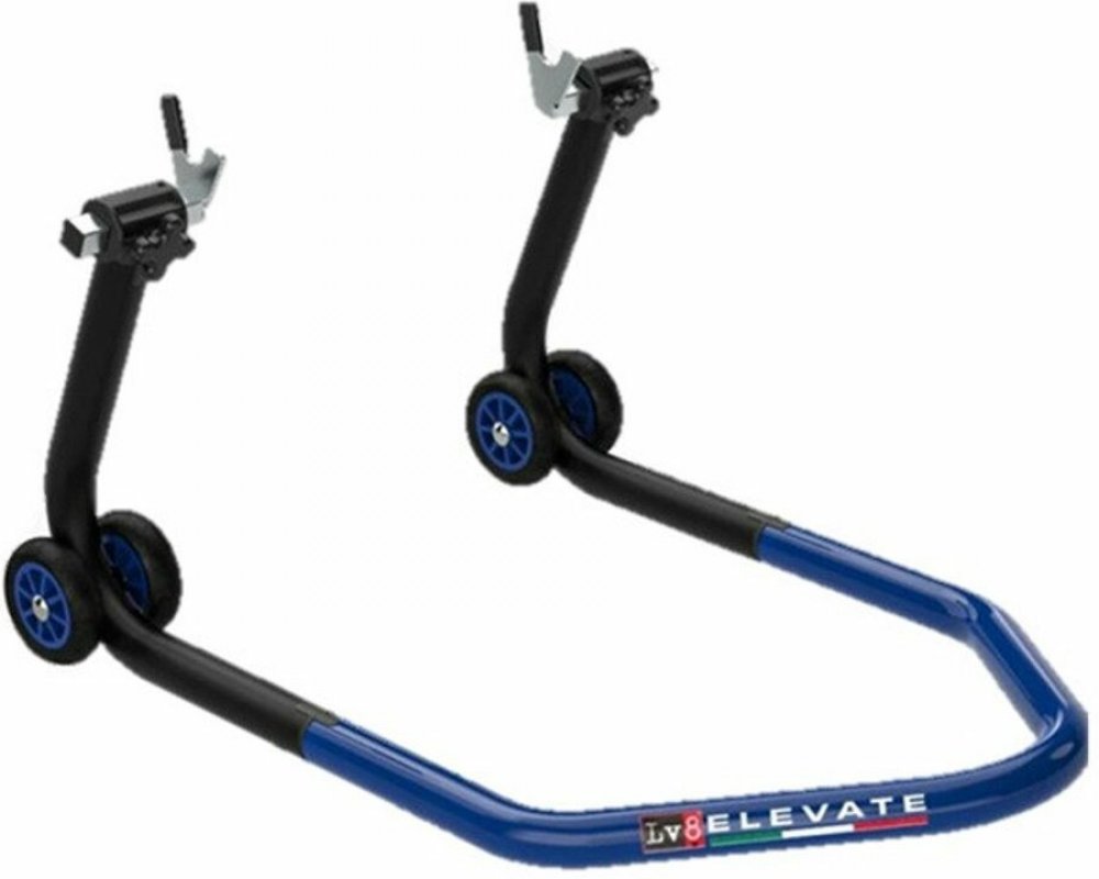 UNIVERSAL REAR STAND WITH V FORK CURSORS - BLACK/BLUEPatentovaný zadní stojan na motorku dodávaný ve třech snadno montovatelných dílech - lze ho sestavit bez použití šroubů a šroubováků.Schválený a používaný předními výrobci motocyklů. Součástí je sada vidlicových držáků typu V – kit E620/08C.VLASTNOSTI:3dílná konstrukce, kterou lze sestavit bez použití šroubů nebo šroubovákůSchváleno předními výrobci motocyklůPatentovaný systém spojení pro snadnou a rychlou montážOchrana proti poškrábání při kontaktu se zemíBezespará konstrukce pro maximální pevnost a stabilituDržáky s posuvníky z polyamidu s úchopovým kolečkem a závitovým čepem4 barevná kolečka z termoplastické pryžeK dispozici v 7 různých barvách