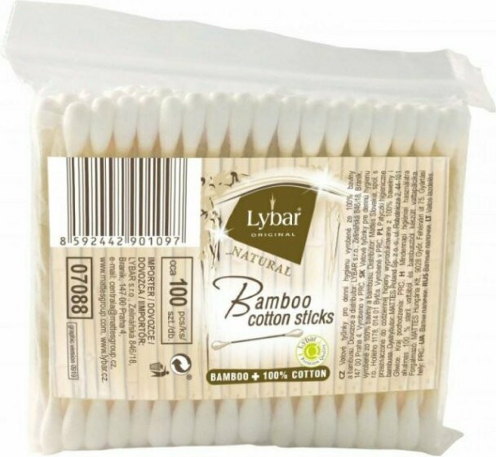 LYBAR Natural bamboo Vatové tyčinky v sáčku 100 ks