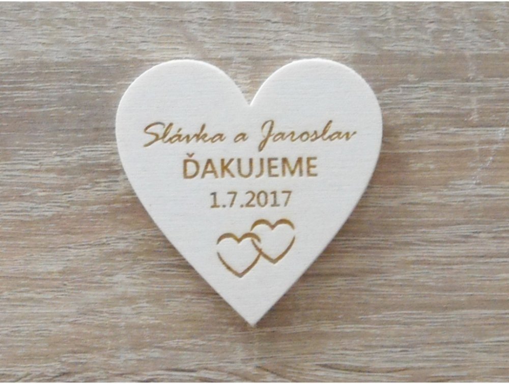 LYMFY | Svatební magnetky B srdíčka | přírodní dřevo