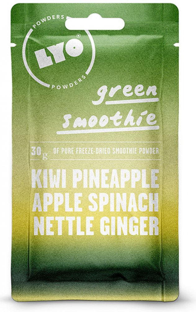 Špenát, kopřiva, jablko, kiwi a ananas se špetkou zázvoru… Toto není menu z nové moderní kavárny, ale jedno z nejprodávanějších smoothie! Svou osvěžující chutí a zářivě zelenou barvou okouzlí Lyo Food Green Smoothie vaše smysly. Užijte si ho po celý rok, ve městě, na cestách i při svých outdoorových dobrodružstvích.