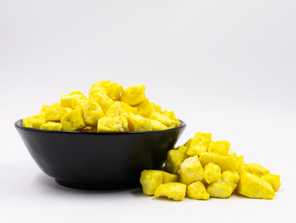 Složení: Lyofilizovaný přírodní sýr s curry kořením (pasterované kravské mléko, sýřidlo, mlékařenská kultura, BIO kurkuma, BIO koriandr, BIO hořčice, BIO česnek, BIO zázvor, BIO chilli, sůl)
