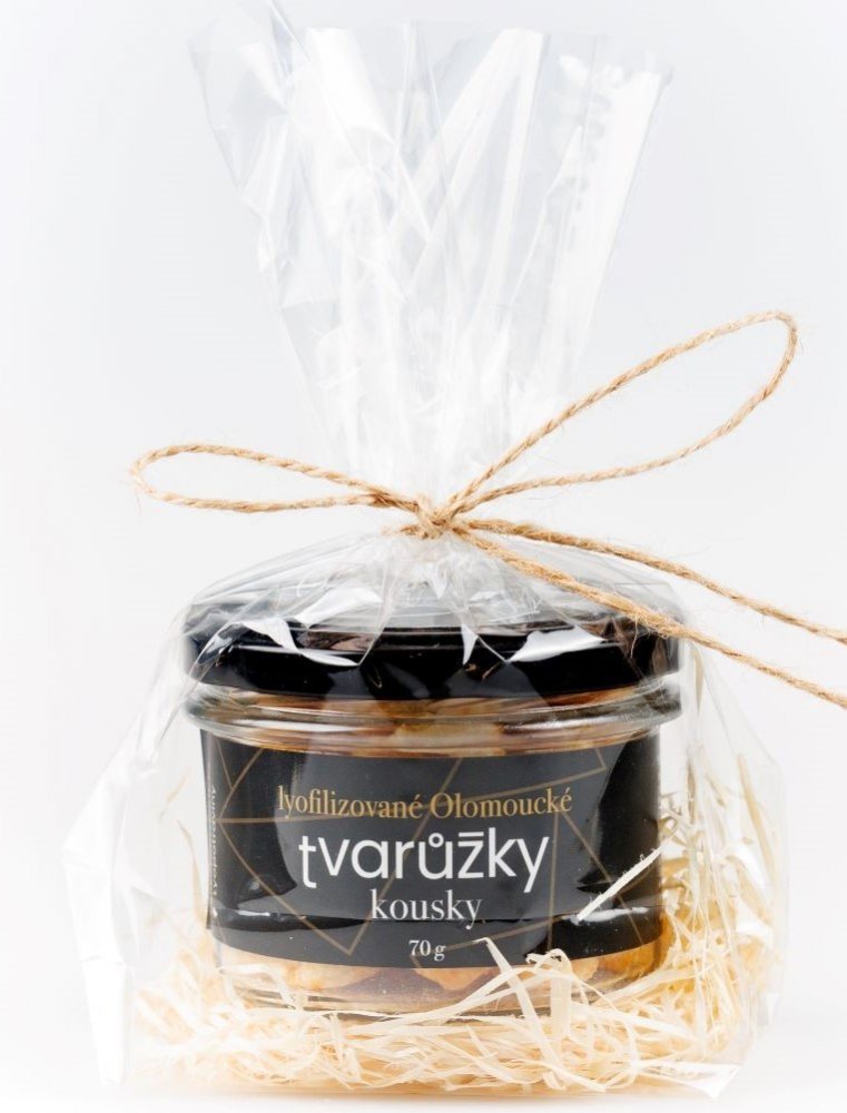 OLOMOUCKÉ TVARŮŽKY LYOFILIZOVÁNO (SUŠENO MRAZEM) - KOUSKY - BALENO VE SKLENICI A CELOFÁNU - SUPER DÁREK