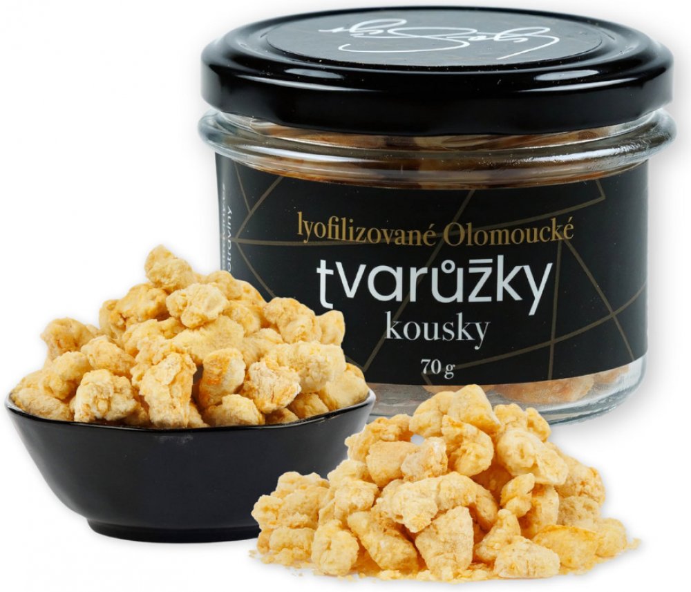 Olomoucké tvarůžky jsou vyrobeny dle tradiční české receptury v Lošticích a dále lyofilizovány.