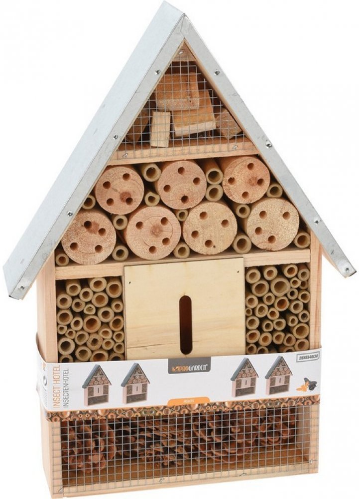 Hotel hmyzí 40 x 28 x 8,5 cm, dřevěný / kov. střecha. rozměry (V x Š x H): 40 x 28 x 8,5 cm materiál: borové dřevo, kovová střecha Hmyzí hotel vytváří skrýše a útočiště pro prospěšný hmyz na vaší zahradě, během léta i při přezimování.