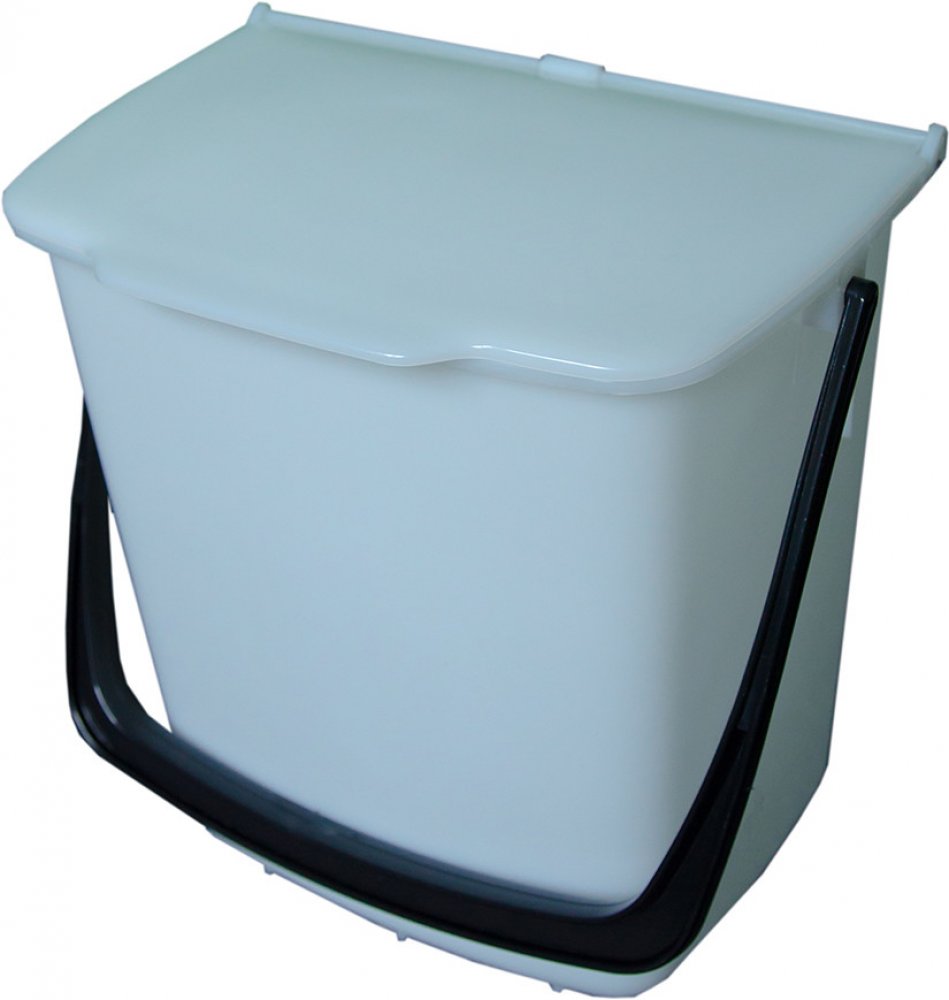 Tento odpadkový koš má praktické víko a rukojeť pro snadné vynášení. Díky dvěma otvorům na šrouby lze koš zavěsit například do skříňky v kuchyňské lince a nezabere tak místo. Koš omývejte vodou do 70° C. Chraňte před sálavým teplem (kamna, vařiče).