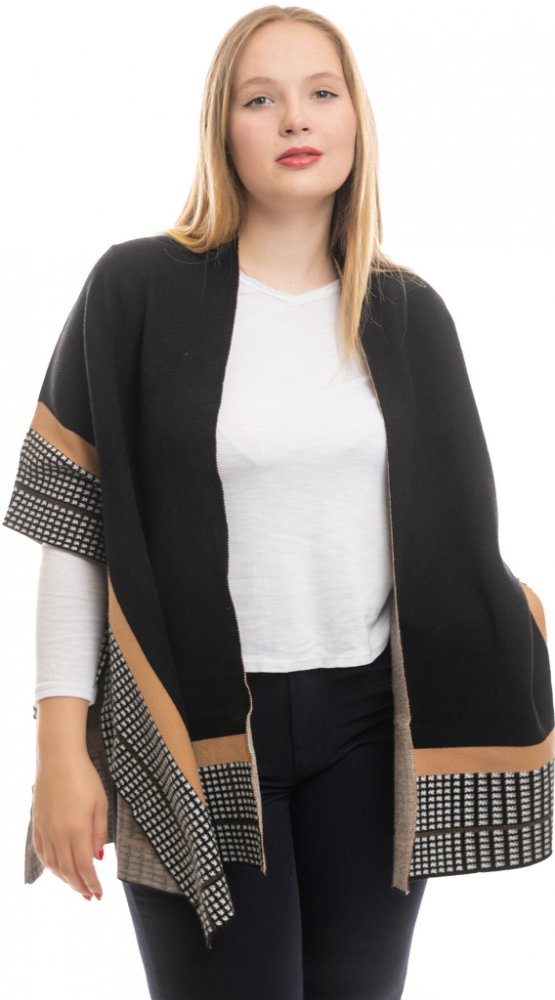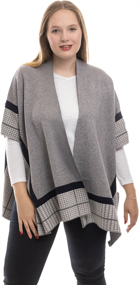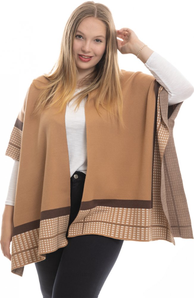Dámské pončo ARNIE je velice stylový a slušivý podzimní kousek. Je dostupný v neutrálních barvách, má volný střih a rukávy jsou zakončené knoflíčkem. Kardigan je lemován vzorovaným pruhem po celém obvodu. Uprostřed zad kardigan rozděluje šev. Nejlépe sedí na velikost L-3XL.