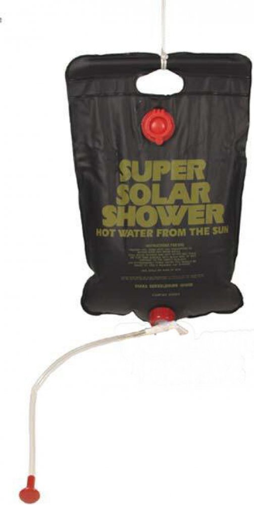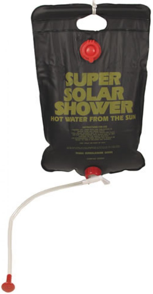 Kvalitní pevný vak vhodný také jako solární sprcha od německé firmy MFH. Vak jednoduše naplníte vodou, necháte ho vystavený slunečnímu záření a zhruba za 2 hodinky se můžete komfortně osprchovat teplou vodou. Tento postup můžete opakovat každý slunečný den celou sezonu. Na podzim vak necháte vyschnout, sbalíte ho a máte jej připravený na další sezonu. Vhodné na chaty, do kempů, pro turistiku, na cestování atd. Černý materiál velice dobře absorbuje tepelnou a ...