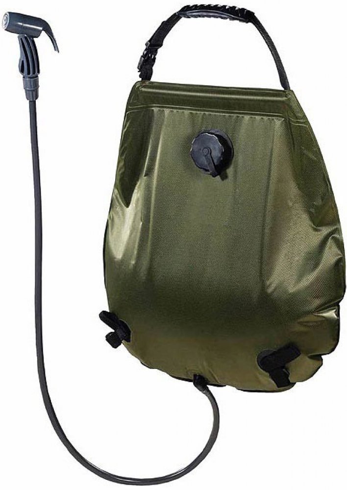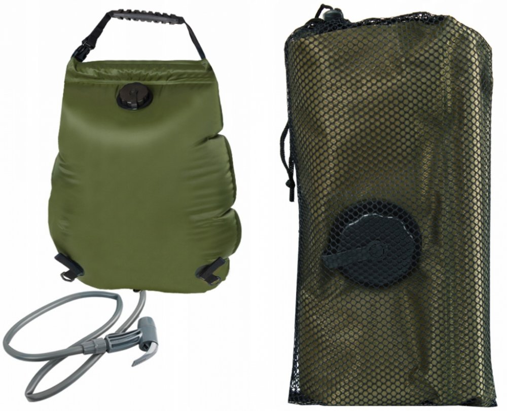 V čem se tato sprcha však liší od jiných nabízených 20 l vaků?- sprcha je pevnější díky potažení přední části pevným polyesterem v olivově zelené barvě