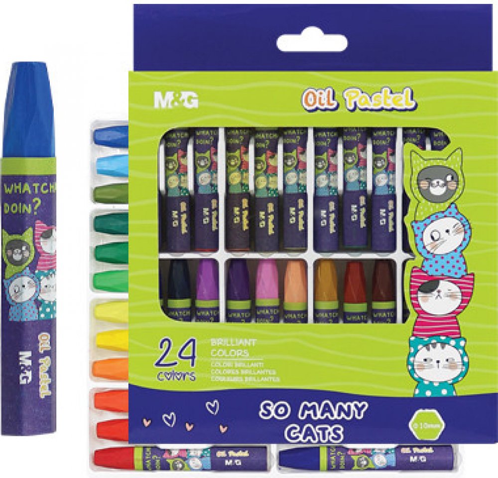 Šestihranné olejové pastelky So Many Cats, jejichž tělo je pokryto papírem. Zářivé barvy, které mají vysokou krycí vlastnost. Vosk je měkký a nezanechává stopy na rukou. Barvy lze překrývat zda používat techniku ??škrábání pro překreslování reliéfního povrchu. Průměr voskovky 10 mm. Balení obsahuje 24 ks.