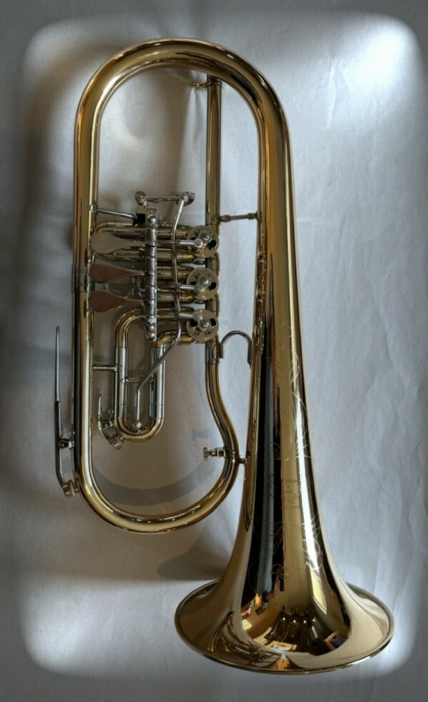Křídlovka je osazena zlatomosazným ozvučníkem menšího objemu, produkující typický středoevropský zvuk s velmi lehkým ozevem a samozřejmně perfektní intonací.