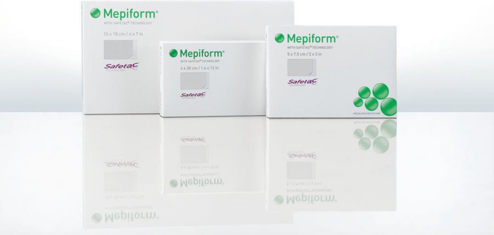 Adhezivní krytí s technologií Safetac k ošetření jizev - sterilní. Vlastnosti výrobku: Zkušenosti s místně používaným silikonem ukazují, že má příznivý vliv na hypertrofické jizvy a keloidy. Zlepšení stavu staré jizvy si může vyžádat 3 měsíce až jeden rok, v závislosti na stavu tkáně jizvy. V ideálním případě by se mělo krytí Mepiform nosit 24 hodin denně. Doporučujeme krytí Mepiform jednou denně snímat, například při sprchování nebo koupání, zkontrolovat kůži a omýt ji.Mepiform byl vyvinut k péči o: staré i nové hypertrofické jizvy a keloidyDávkování: Optimálně by měl být Mepiform používán 24 hodin denně. Doporučuje se Mepiform jednou denně odstranit, např. při sprchování nebo koupání, pro kontrolu a omytí kůže. Při profylaktické léčbě by měl být Mepiform používán 2 - 6 měsíců v závislosti na stavu jizvy.Kontraindikace: Alergie na silikonVýhody Mepiformu: Nevyžaduje dodatečnou fixaci Jeden kus Mepiformu lze nosit několik dní Je tenký, pružný a diskrétní Umožňuje opakovanou aplikaciRozměr: 10 cm x 18 cmBaleno: 5 kusů náplastí v balení min. 1 bal.