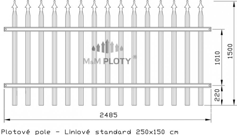 M&M PLOTY - Kovové plotové pole - Liniové standard, grafit Rozměry(š x v): 250 x 150 cm
