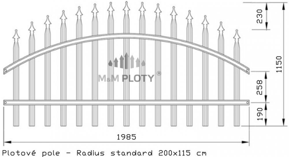 M&M PLOTY - Kovové plotové pole - Radius standard, grafit Rozměry(š x v): 200 x 115 cm