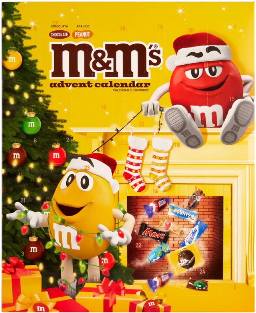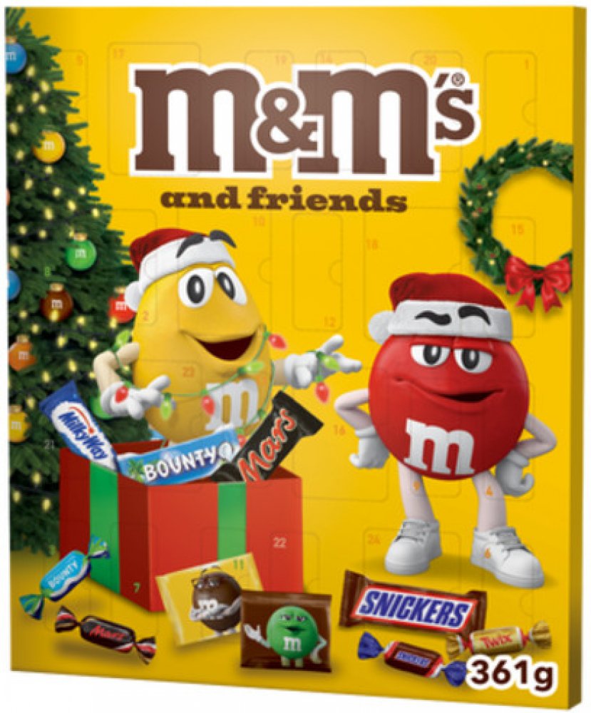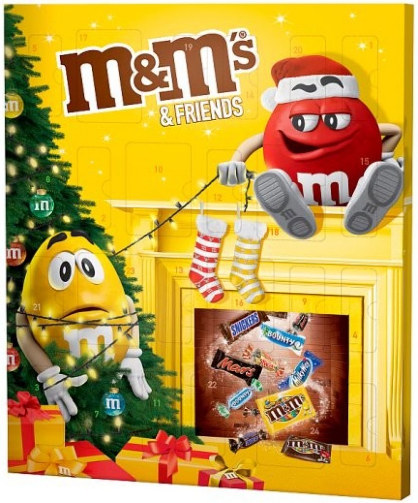Adventní kalendář - nástěnný adventní kalendář ve tvaru domečku, obsahuje Mars Mini, Snickers Mini, Milky Way Mini, Bounty Mini, M&M'S Peanut, M&M'S Choco a Miniatures Mix, velikost 37 × 45 × 1,8 cm