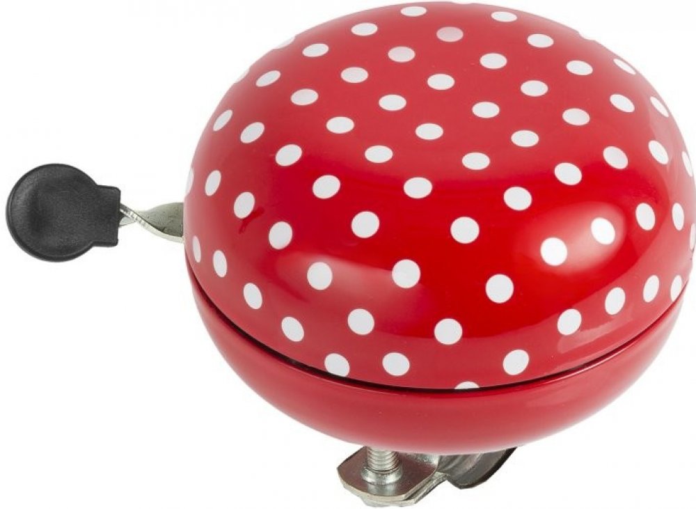 PuntikElegantní zvonek na kolo Ding Dong s retro puntíkovým vzoremVeliký, dvouhlasný zvonek na kolo pro bezpečnou jízdu městem. Pro důrazné upozornění okolí, že jede kolo je dobré zvonek požívat ať už pro svou bezpečnost nebo pro bezpečnost okolo procházejících lidí, dětí či čtyřnohých mazlíčků.Zvonit je slušnost, tak ať Vás nikdo nepřehlédne a hlavně nepřeslechne!Velikost: 80mm průměr