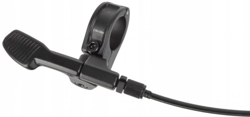 Teleskopická sedlovka M-Wave s hydraulickým uzamykáním a vnějším vedením.