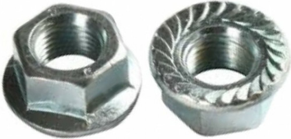 Šestihranné matice s ozubeným límcem se používají k jednoduchému zajištění šroubového spoje, kdy se ozubení na spodní straně límce zaryje do povrchu materiálu a tím zabraňuje uvolnění matice.