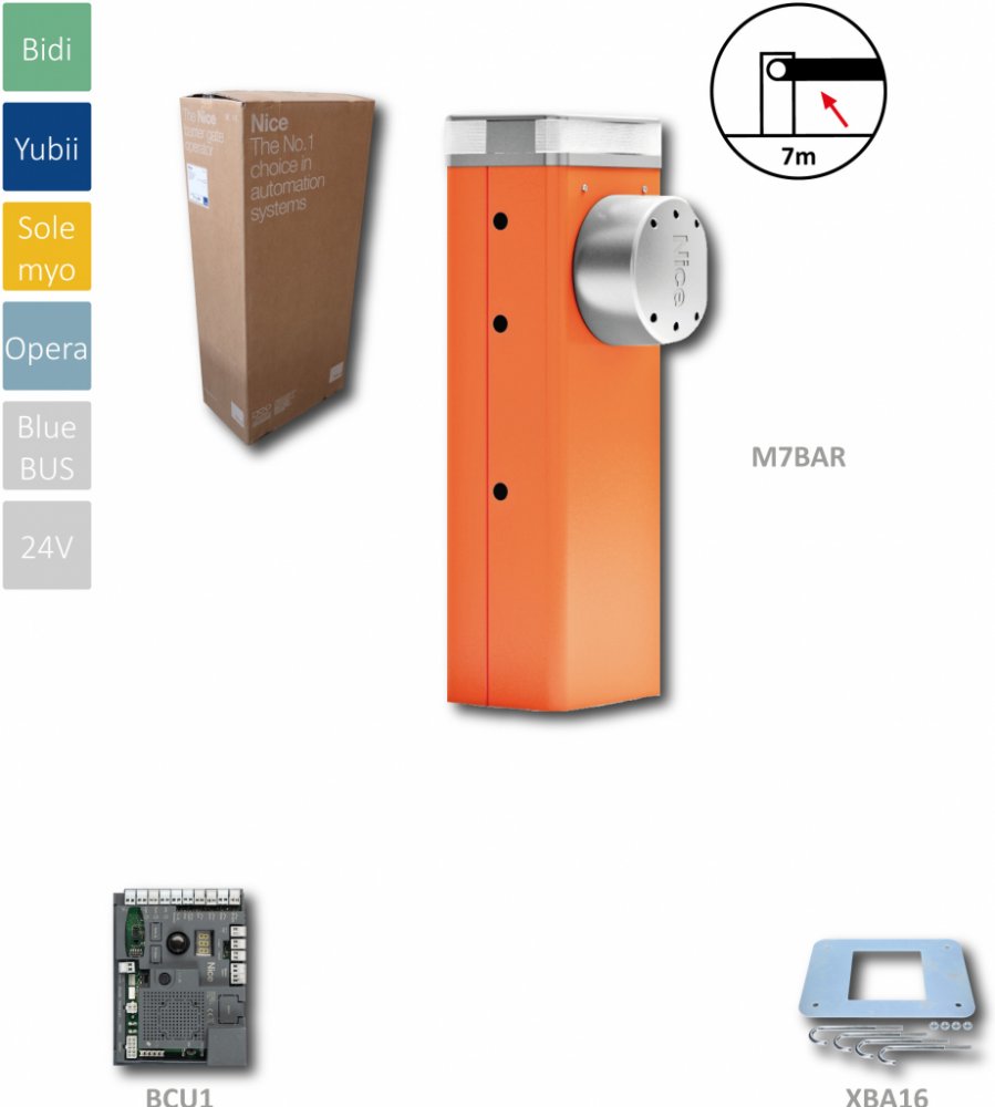Automatická závora do 7m průjezdu, motor 24V, 300Nm s elektronikou XBA30, 1x kotevní deska, bez ramene
