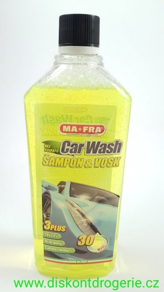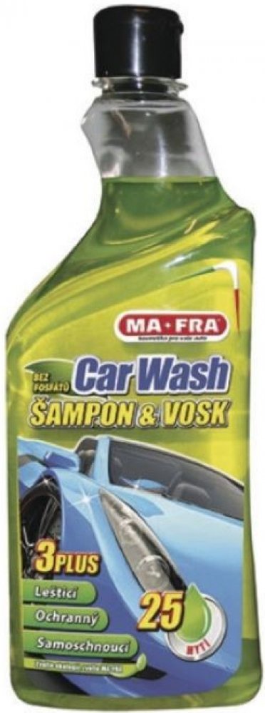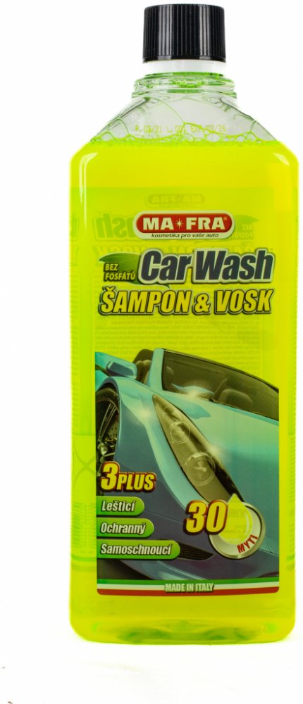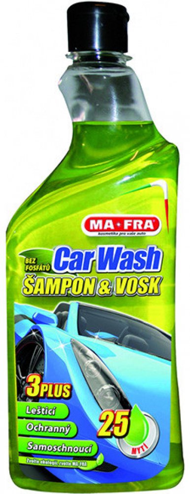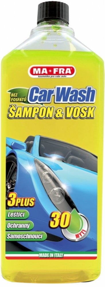 Autošampon s voskem Mafra Car Wash spolehlivě čistí, leští a chrání lak auta. To vše v jednom jednoduchém kroku. Zanechá na ošetřeném povrchu vrstvu vysoce kvalitních syntetických vosků, které chrání auto před solnou mlhou, UV zářením a kyselými dešti. Speciální složení přípravku brání vzniku skvrn a je tedy ideální pro černá nebo tmavá auta. Díky efektu Hydro Speed usnadňuje stékání vodních kape...