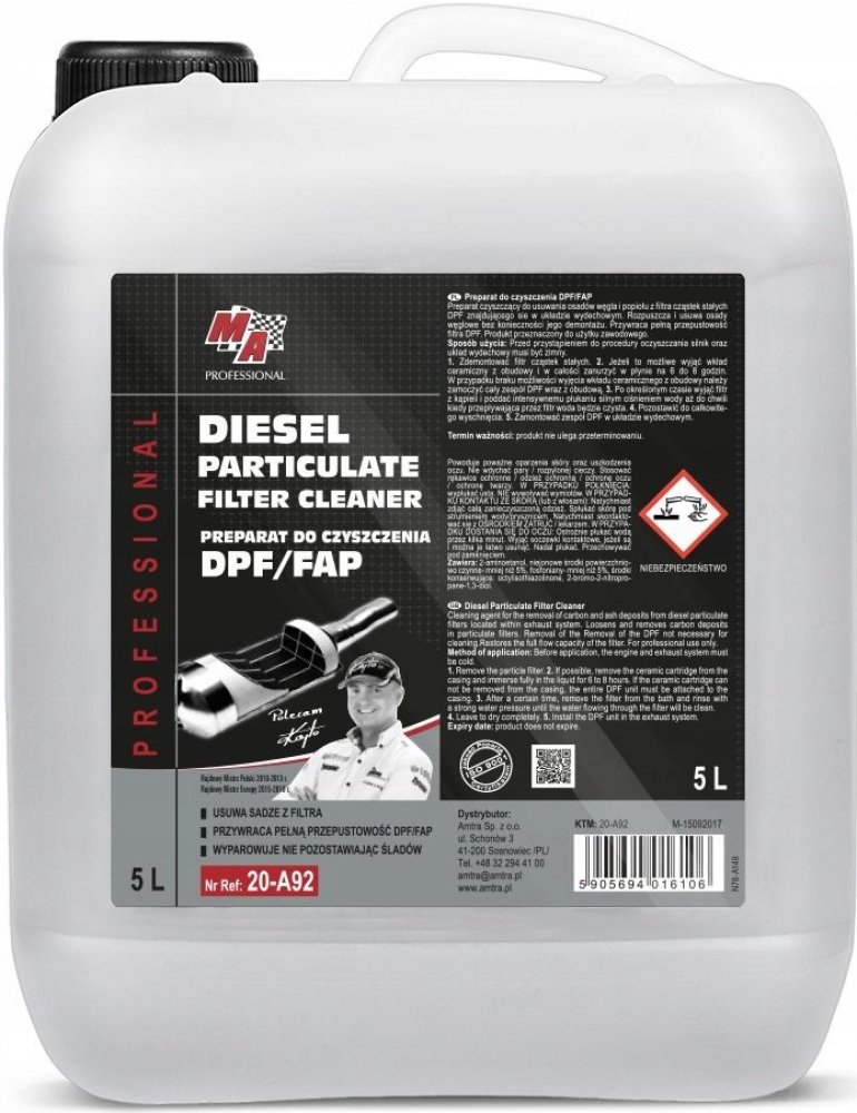 Rozpouští a odstraňuje karbonové usazeniny bez nutnosti jeho demontáže. Obnovuje plnou kapacitu DPF filtru. Výrobek je určen pro profesionální použití.