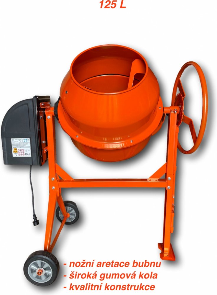 Míchačka Ma-tech 125L FB max je vhodná pro střední stavební práce. Bez problémů namíchá 1,5 kolečka směsi. Vyniká snadnou manipulací a skladovatelností. Je výborným a užitečným pomocníkem na všech menších stavbách, zvláště při přimíchávání menších objemů betonu. Rám a buben jsou vyrobeny z kvalitní oceli a pokryty práškovým nátěrem oranžové barvy. Má silný motor 550W.